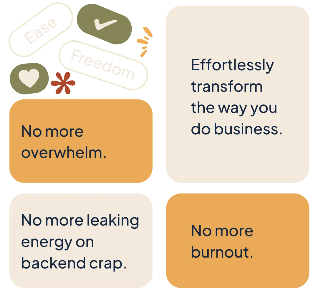 Whether you’re just starting out or finally ready to stop drowning in admin, We've built systems that do it all for you.